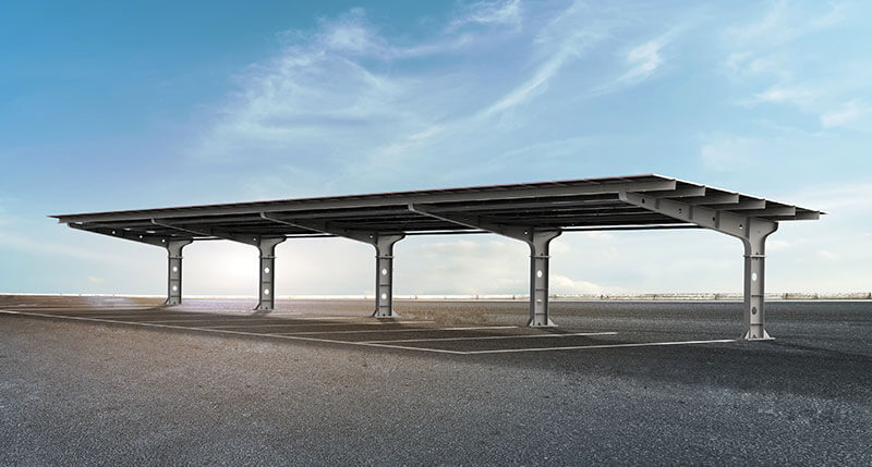 公海555000线路检测中心新能源「华顶」系列光伏车棚系列产品不仅能实现传统车棚的所有功能,而且为业主带来源源不断的绿色发电收益,达到一地多用、节能减排的目的。